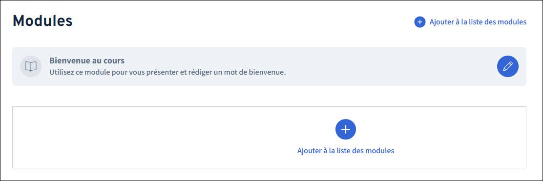 Situé au haut de la liste des modules, le module d’accueil permet d’introduire le cours. Il peut notamment servir à vous présenter au groupe étudiant et à rédiger un mot de bienvenue pour débuter la session. Il contient aussi un bloc intitulé «Avant d’aller plus loin» qui attire l'attention des personnes inscrites au cours sur les principales sections du plan de cours.
